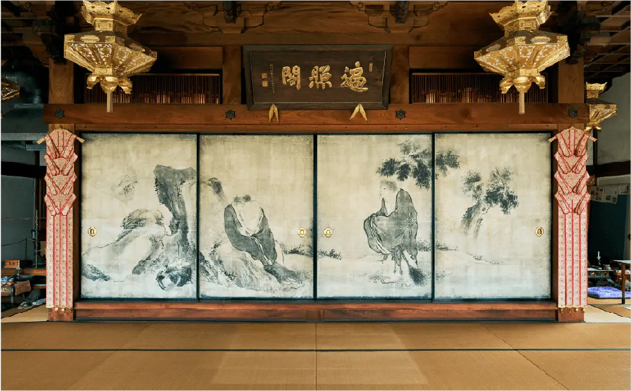 「蘇鉄図」「寿老人図」「竹図」「寒山拾得図」を拝観できます。