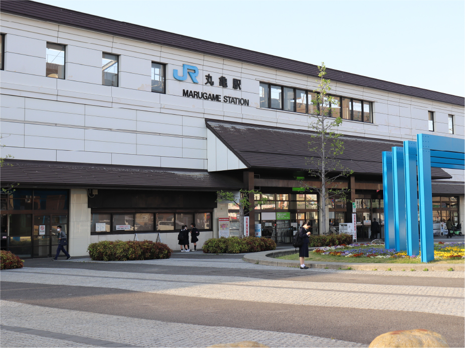 JR丸亀駅から徒歩4分、車でお越しの場合も坂出北IC、善通寺ICから約15分と、