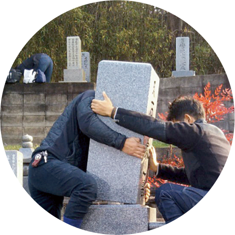 お墓は解体処分し、墓所を返還致します。熟練の職人がお墓を解体し、廃棄物処理法に則り適切に処分を行います。墓石の供養もできます。